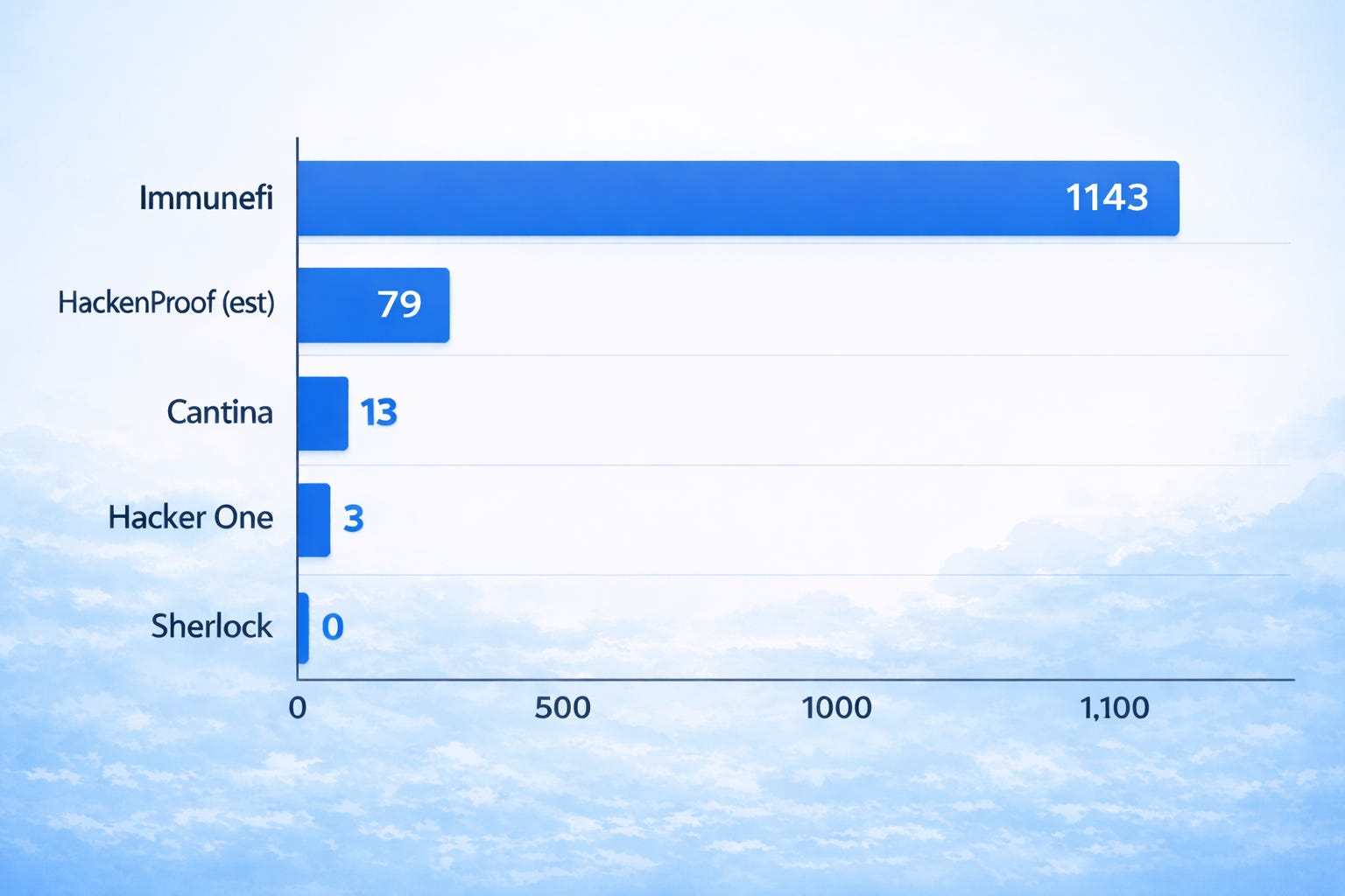 It’s interesting that the user base sizes don’t explain the gap. Immunefi has around 60,000 registered researchers. HackenProof has 45,000. HackerOne claims to have millions. So Immunefi isn’t the largest platform by registered users, but it captures the vast majority of critical vulnerability flow. The difference in output far exceeds the difference in reach, which suggests that the researchers who find critical bugs are disproportionately choosing to submit them through Immunefi.